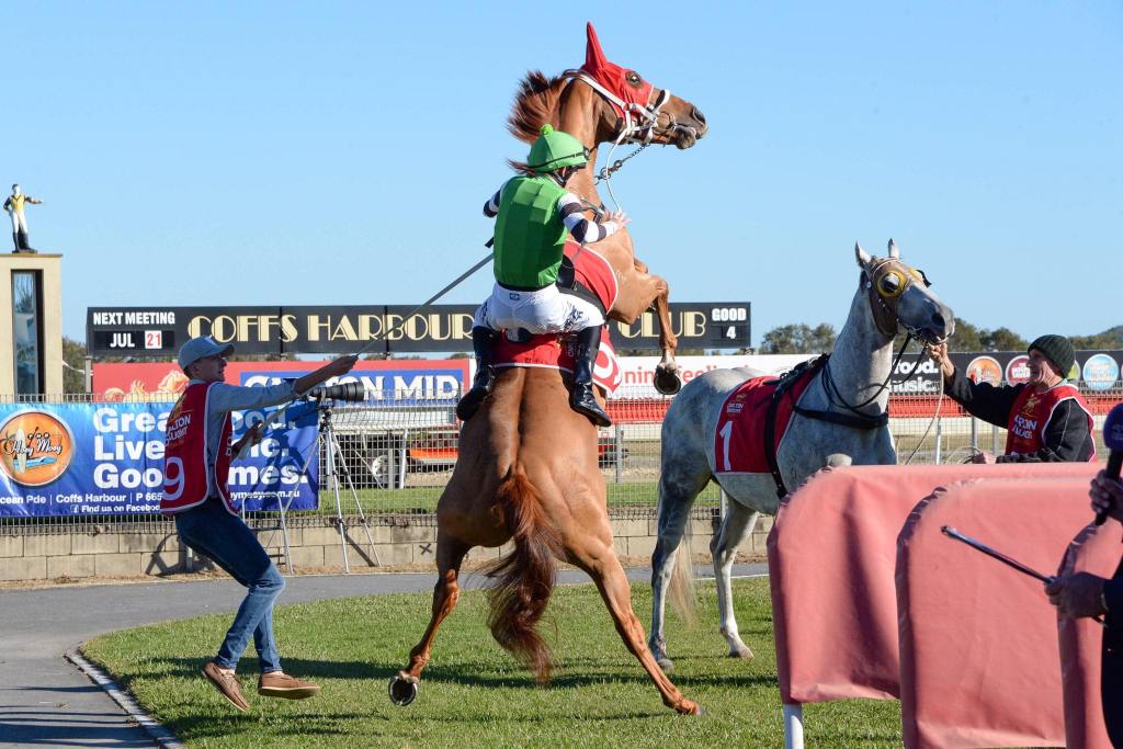 Trailled nicely at Taree on the 27th June, funny story actually he was only tied up in the race day stalls for about 30 seconds on arriving before ripping a wooden rail off the wall and swinging it around at other horses, so safe to say he hasn’t changed at all.